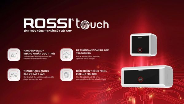 Bình nước nóng Rossi Touch có nhiều nâng cấp về công nghệ