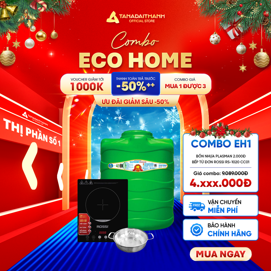 Combo Ecohome 1 gồm 2 sản phẩm "quốc dân" của Tân Á Đại Thành là bồn nhựa Plasman 2000Đ và bếp từ đơn Rossi CE01. Sự kết hợp này là giải pháp hoàn hảo, giúp nâng tầm cuộc sống cho các hộ gia đình, đặc biệt là những gia đình đang sinh sống tại khu vực vùng ven, chất lượng nước không ổn định.