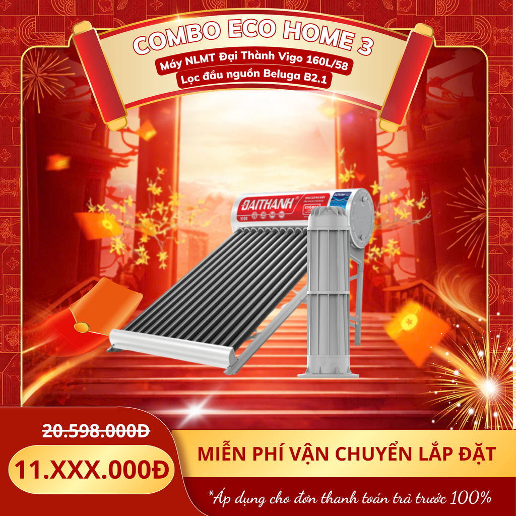 Kết hợp hai thiết bị hiện đại và bền bỉ: MÁY NLMT ĐẠI THÀNH VIGO 160L/58 + Lọc đầu nguồn Beluga B2.1 combo này không chỉ giúp tiết kiệm điện, thân thiện với môi trường mà còn mang đến sự tiện nghi toàn diện cho gia đình.