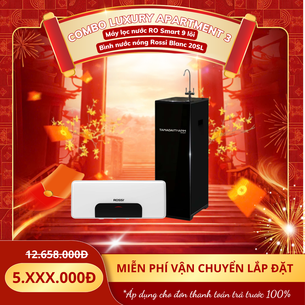 Combo LUXURY APARTMENT LA03 là lựa chọn thông minh cho gia đình muốn đầu tư đồng thời vào nguồn nước sạch để uống và hệ thống nước nóng tắm tiện nghi, an toàn.