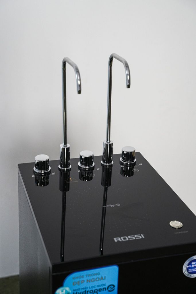 Một điểm cộng khác của máy lọc nước Rossi Hydrogen 12 lõi chính là thiết kế tủ đứng sang trọng với những đường viền sắc nét, mang tới một không gian sống sang trọng, tinh tế. Thay các nút bấm vật lý, máy lọc nước Rossi Hydrogen được trang bị hệ thống nút vặn được chế tác tinh tế, vừa giúp tăng thẩm mỹ vừa tăng độ tiện lợi trong sử dụng.