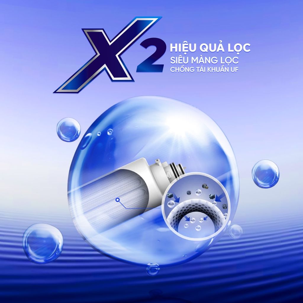 - Siêu màng lọc UF nhỏ hơn tới 50 lần mắt màng lọc thông thường.