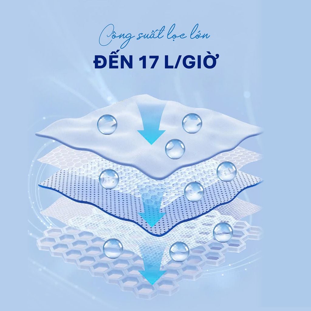 - Công suất lọc: 17 lit/giờ (phụ thuộc nguồn nước đầu vào)